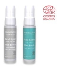 オーガニック玄米由来エタノールでつくった、手指をケアするハンドスプレーは肌あたりなめらか。使うシーンを選ばないフレッシュブリーズ(香料無添加)と清涼感のあるミントフレッシュの2種類の香りです。保湿成分として、オリジナル原料の米もろみ粕エキスを配合しました。