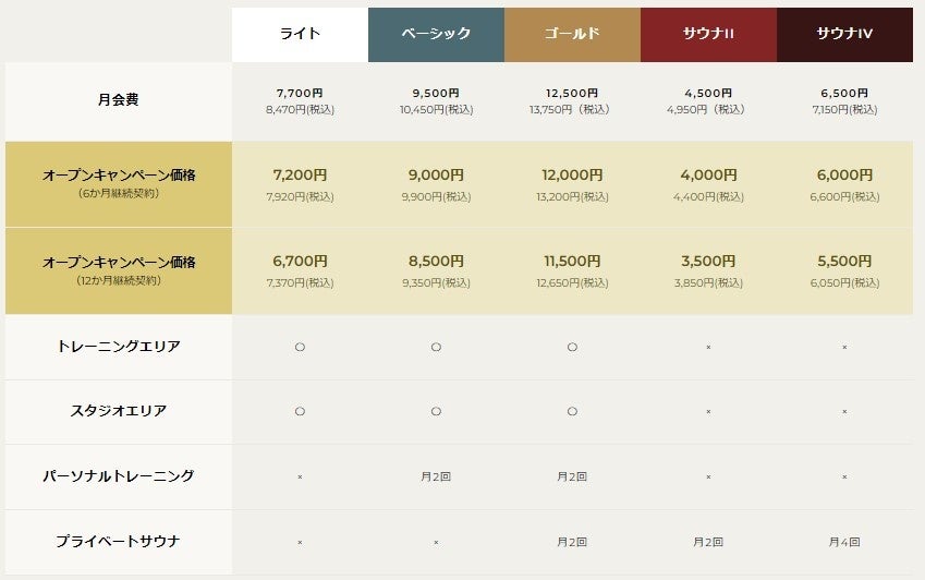 オープンキャンペーン期間にご入会いただくと、AI搭載サーキットマシンとマシンジムエリア、さらにバーチャルスタジオも使い放題のライトプランが月7,370円、加えて月2回のパーソナルトレーニングも受けられるベーシックプランが月9,350円で始めていただけます。過去にジムに通ったけど続けられなかった方や自分に合った運動方法が分からず運動効果を感じられなかった方でもお手頃価格で楽しく成果が出せるジムとなっています。