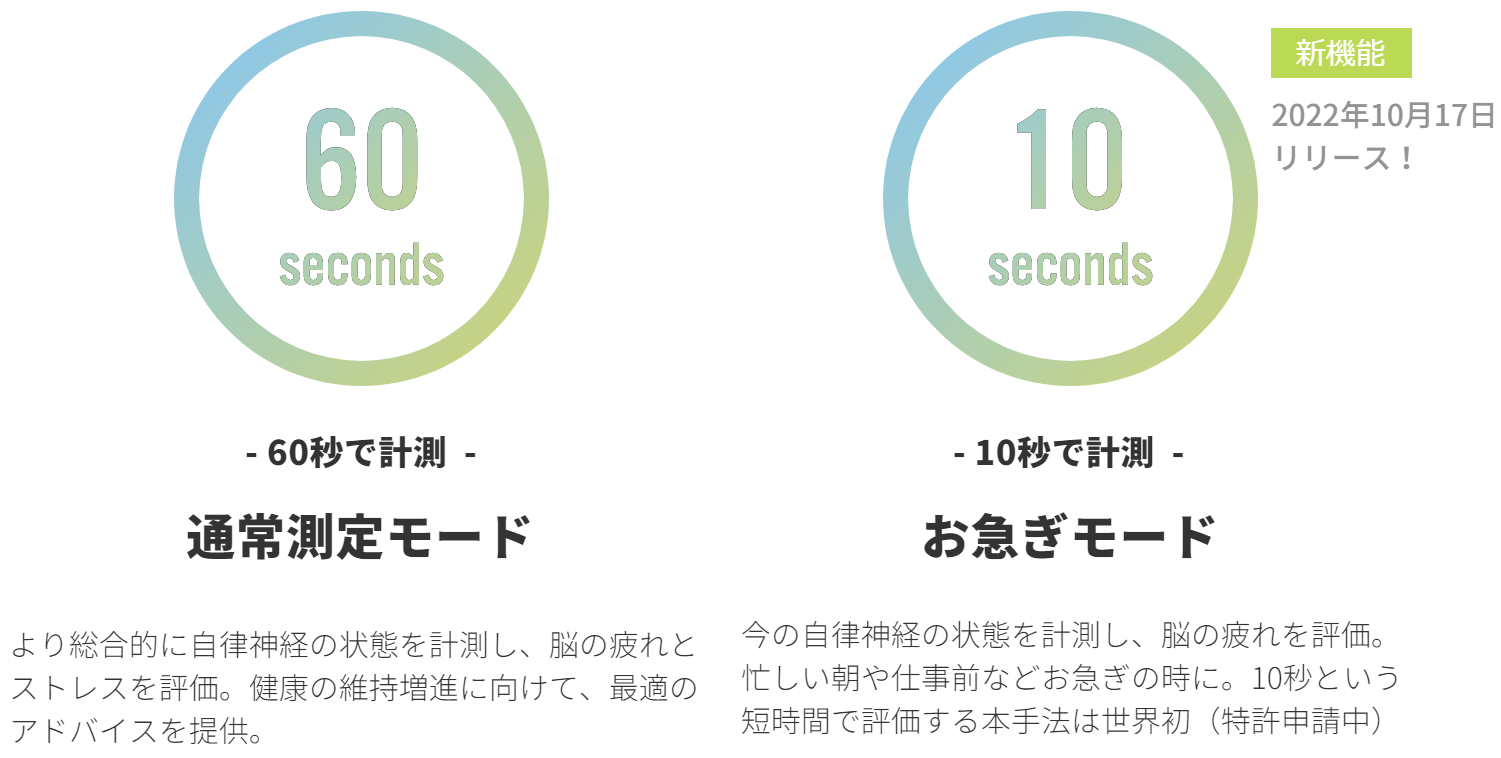 自律神経評価事業を展開する株式会社FMCC(代表取締役:倉恒弘彦)は、スマートフォンのカメラ機能を使って脈拍の間隔をとらえ、その「ゆらぎ」から自律神経機能を評価する技術を開発してきました。2020年11月よりスマホを用いて60秒で自律神経から健康状態を評価するアプリ「ヒロミルー疲労ストレススキャン」をリリースし、高評価をいただいています(2021年度大阪トップランナー育成事業認定)。しかし、朝起きたときや寝る前、仕事に取りかかる前などで日常的に利用しやすくするために、「もっと計測時間を短くできないか」との声を多くいただいておりました。もっと計測時間を短くできれば、忙しい仕事の前後でも利用がしやすく疲労やストレスの蓄積にすぐに気づくことができます。私たちはこれまでの自律神経機能評価事業で得た知見を活かし検討を重ね、これまでとは全く異なる評価アルゴリズムを考案し計測時間短縮に成功いたしました。そしてこの度、2022年10月17日(月)より、たった10秒で脳の疲労を評価することができる「ヒロミルー疲労ストレススキャン(お急ぎモード)」をリリースいたします。