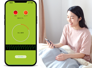 測定方法:「お急ぎ測定」を選択し、音声ガイドに従い、指先をスマートフォンの背面カメラにあてて、安静にして目を閉じてください。スマートフォンのカメラ機能によって指先の血流の変化をとらえます。