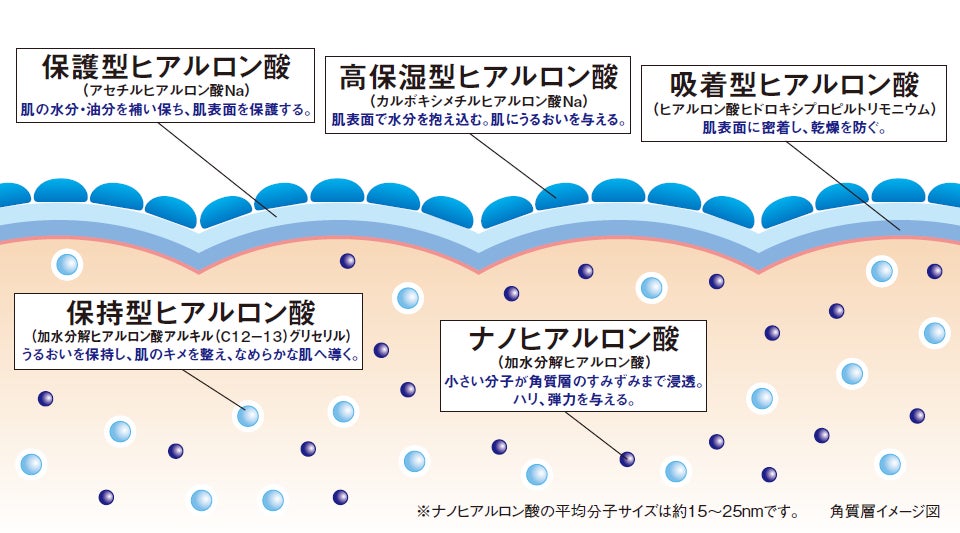 ※4 加水分解ヒアルロン酸、ヒアルロン酸ヒドロキシプロピルトリモニウム、アセチルヒアルロン酸Na、カルボキシメチルヒアルロン酸Na、加水分解ヒアルロン酸アルキル(C12-13)グリセリル