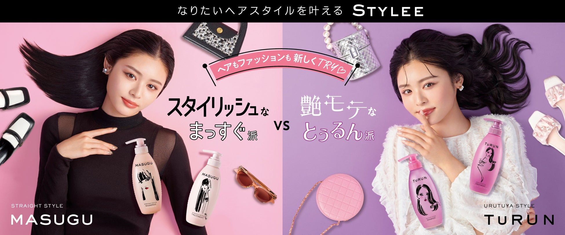 なりたいヘアスタイルを叶えるブランドとして2022年に誕生した「STYLEE」は、うねり髪で悩む女性に向けた“まっすぐ”髪へ導く「MASUGU」シリーズと、乾燥した髪で悩む女性に向けたサロン帰りのような“とぅるん”髪へ導く「TuRUN」シリーズを展開しており、それぞれのなりたい髪に応じて、お選びいただくことができます。