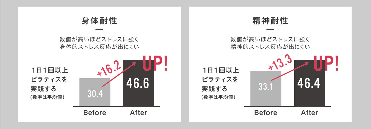 最先端研究結果・科学をもとに、テクノロジードリブンでシームレスな事業展開によりHolistic WellnessとWell-beingの実現を目指す株式会社ZEN PLACE(本社:東京都渋谷区 代表取締役:尾崎成彦)は、ピラティスによるメンタルヘルスの向上・改善に関する独自検証を実施いたしました。その結果、1日1回以上ピラティスを行う実践者の「身体耐性」・「精神耐性」スコアに大きな改善を確認しました。