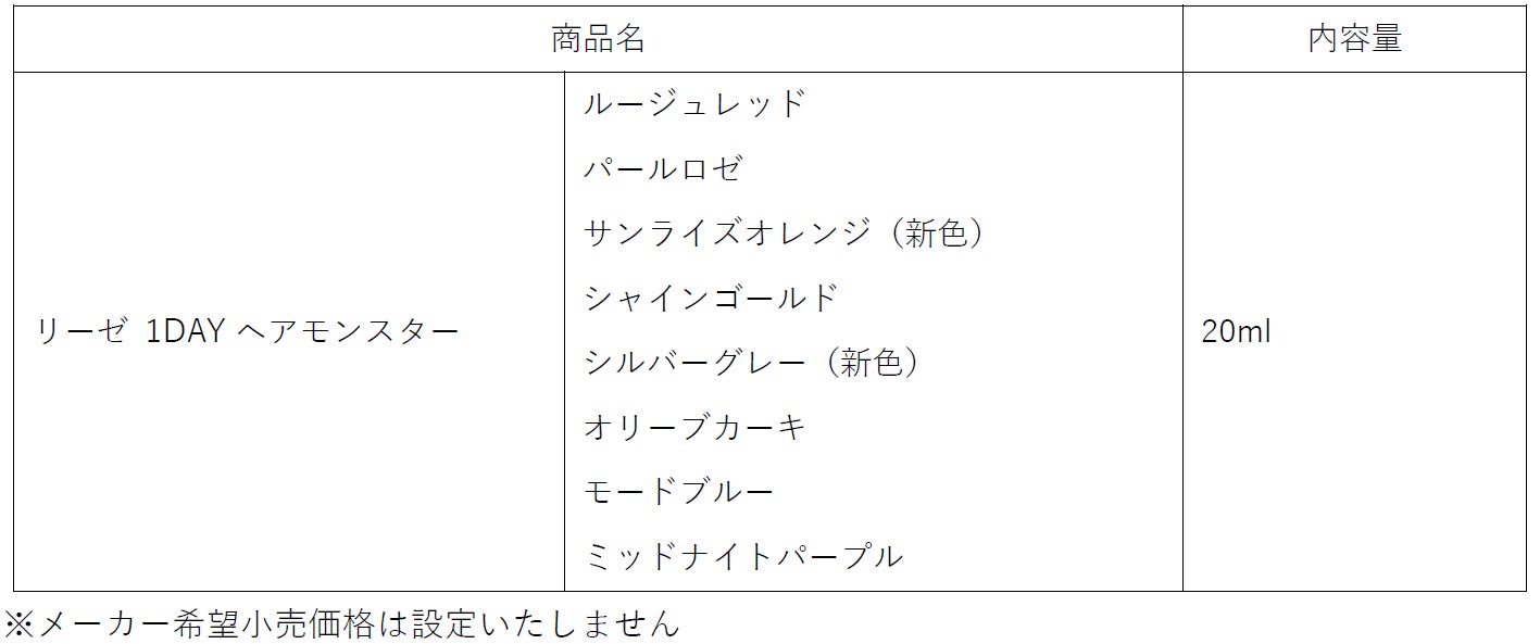 花王株式会社のヘアコスメティクスブランド「リーゼ」は、「1DAYヘアモンスター」を2022年10月8日に改良新発売し、新色“サンライズオレンジ”と“シルバーグレー“の2色も追加で発売いたします。