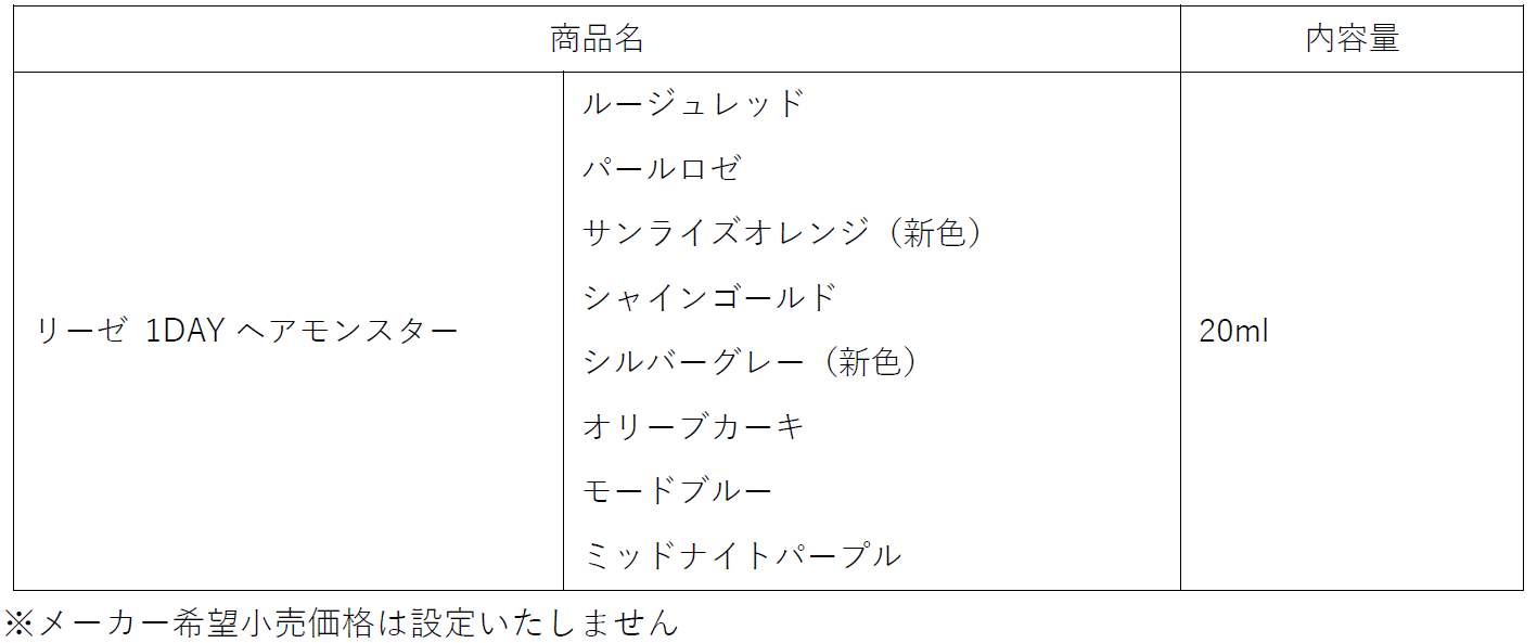 花王株式会社のヘアコスメティクスブランド「リーゼ」は、「1DAYヘアモンスター」を2022年10月8日に改良新発売し、新色“サンライズオレンジ”と“シルバーグレー“の2色も追加で発売いたします。