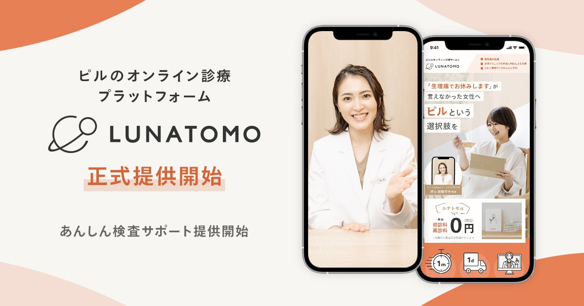 株式会社Lunatomo(本社:東京都渋谷区、代表取締役社長:永友絢子、よみ:ルナトモ)は、2022年7月よりベータ版として提供していたピルのオンライン診療プラットフォーム「ルナトモ」において、提携クリニックで利用できる検査サポート「あんしん検査サポート」を拡充し、10月3日(月)より本格提供を開始いたします。