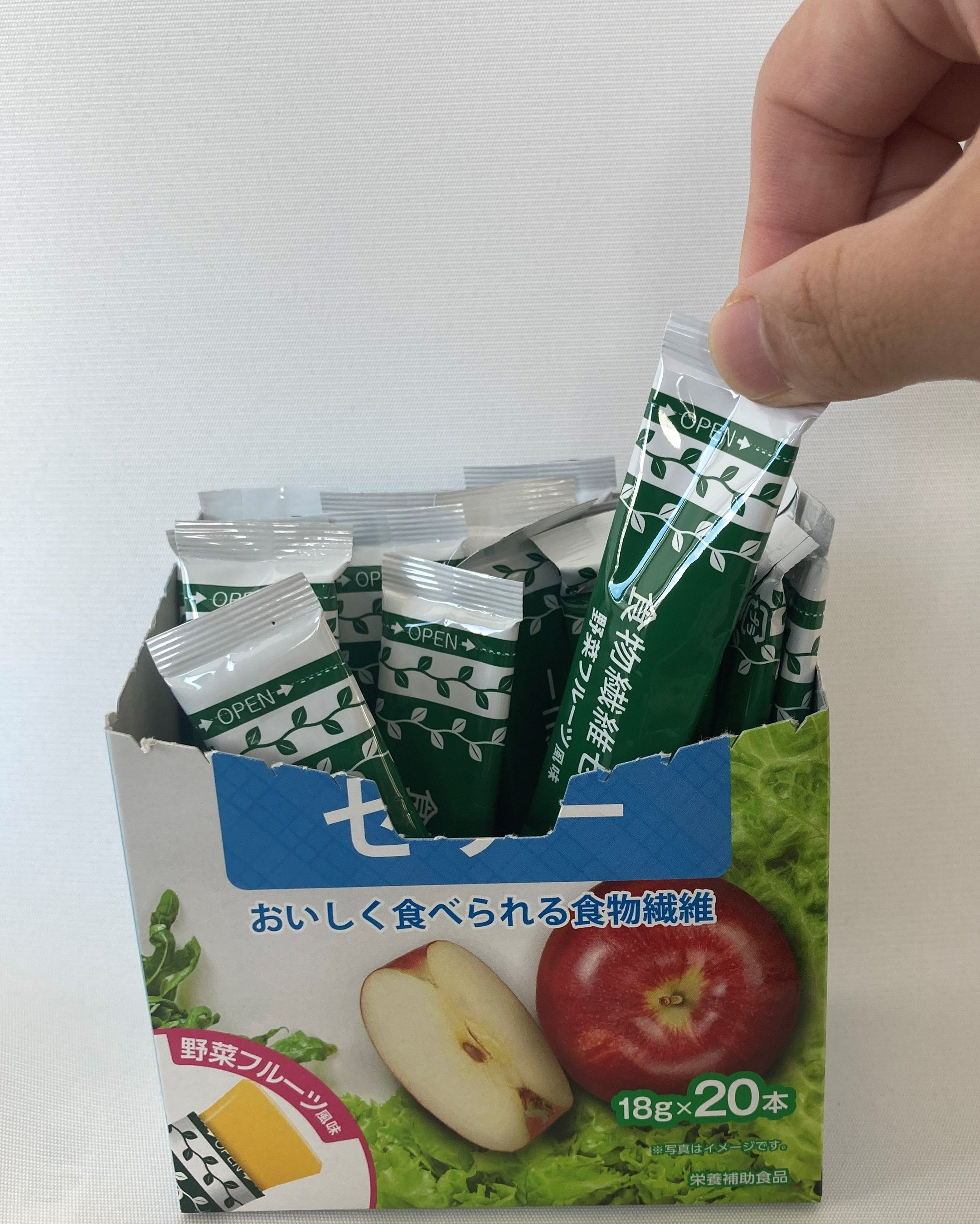 「日本調剤の食物繊維ゼリー」は、不足しがちな食物繊維を手軽においしく補える、スティックタイプのゼリーです。個包装のパウチで持ち運びやすく、間食やデザート替わりにいつでもお召し上がりいただけます。