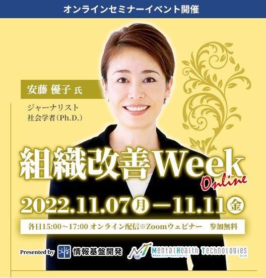 また、提携を記念して、株式会社情報基盤開発×メンタルヘルステクノロジーズ共催オンラインイベント「組織改善WEEK」の開催を企画しております。