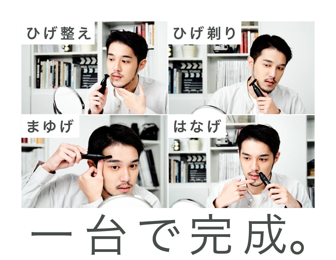 クラウドファンディングサイト「GREEN FUNDING」にて、2022年10月4日(火)より先行予約販売開始。本体は4種類のアタッチメントを交換するだけで髭・眉毛・フェイスシェーバーなど様々な機能を備えています。