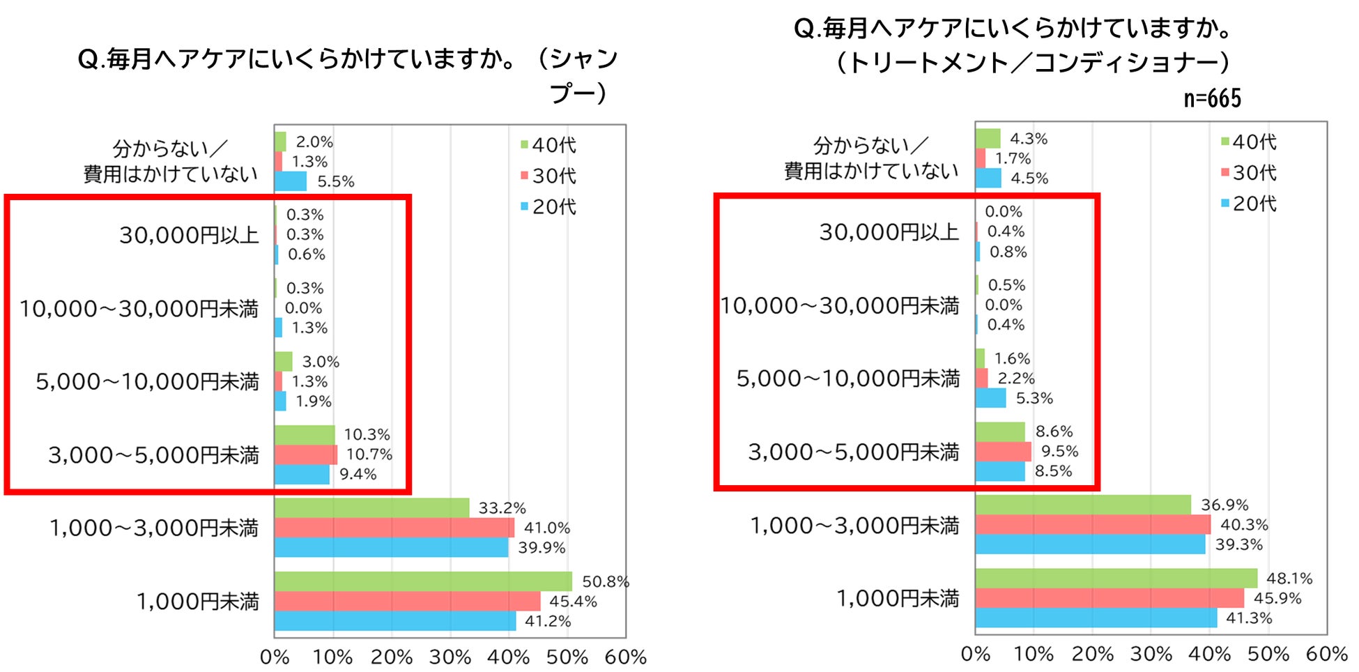 ■シャンプー、トリートメント/コンディショナーは低価格帯の選択が多いものの、1割強の人はこだわりを持って3,000円以上の商品を購入している実態が明らかに