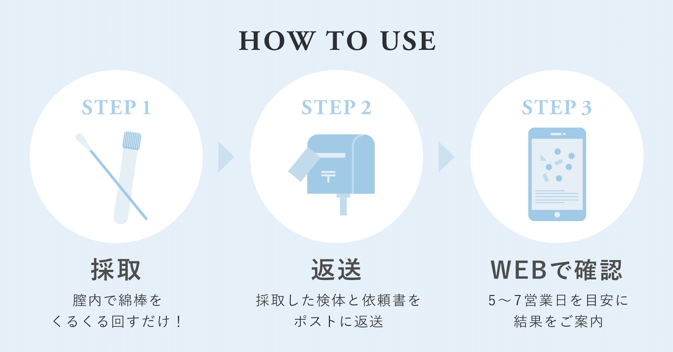 東京都やその近隣県を含む首都圏を中心に、病院・診療所や健診施設様の臨床検査を受託している登録衛生検査所で検査します。検査結果には産婦人科医からのアドバイスが付いてきます。