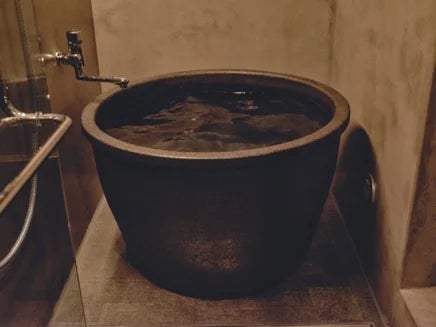 KUU のためのオリジナルの陶器は信楽焼(しがらきやき)。信楽焼本来の風合いをそのままに成形から焼成まで職人の手作業で作られています。また、水にもこだわり、硬度成分を限りなくゼロに近づけたお肌に優しい軟水を採用。肌当たりの良い軟水を採用することで、サウナ後の「肌のかさつき」や「髪のパサツキ」などのトラブルをサポートします。