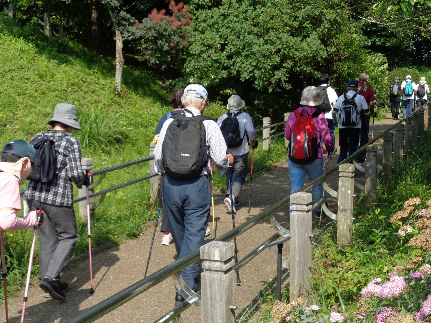 ウォーキング専用ポールを持って、有酸素運動、筋トレ、ストレッチングなどを行い、足腰への負担が少なく、運動効果が高い歩き方を体験できます。