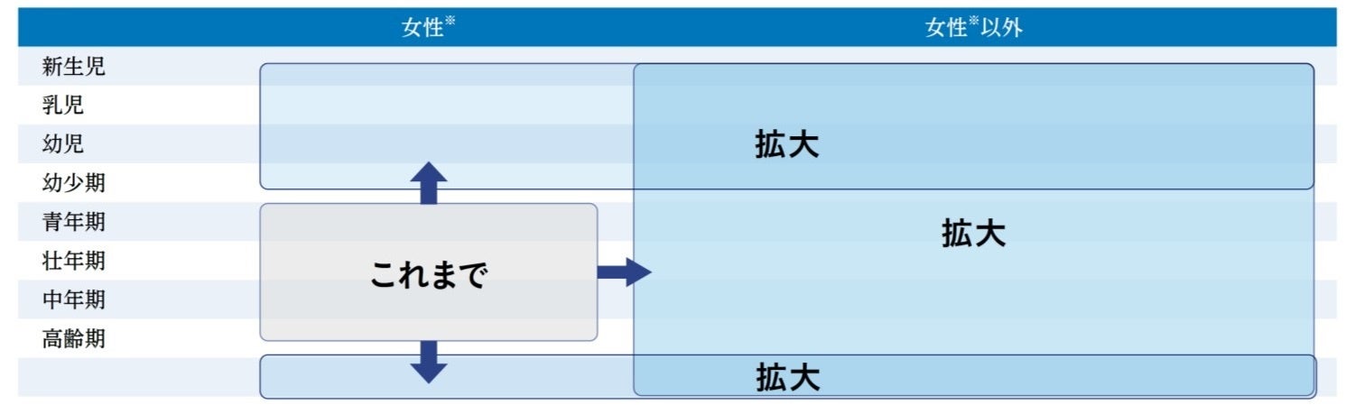 当社では、中長期ビジョン「VISION2026」の中で、新たなお客さまづくりの拡大領域としてグローバル(Global)・ジェネレーション(Generation)・ジェンダー(Gender)のそれぞれの頭文字をとった“3つの G”を掲げています。性別や年齢にとらわれない、より多くのお客さまに寄り添う商品やサービスを提供する、アダプタビリティの考えにもとづく取り組みを強化しています。例えば、「ジェネレーション」については、これまでに幼少期からのスキンケアやUVケア習慣の普及など、次世代を担う子どもたちの成長を、化粧品による健やかな肌づくりの側面から支援してきました。