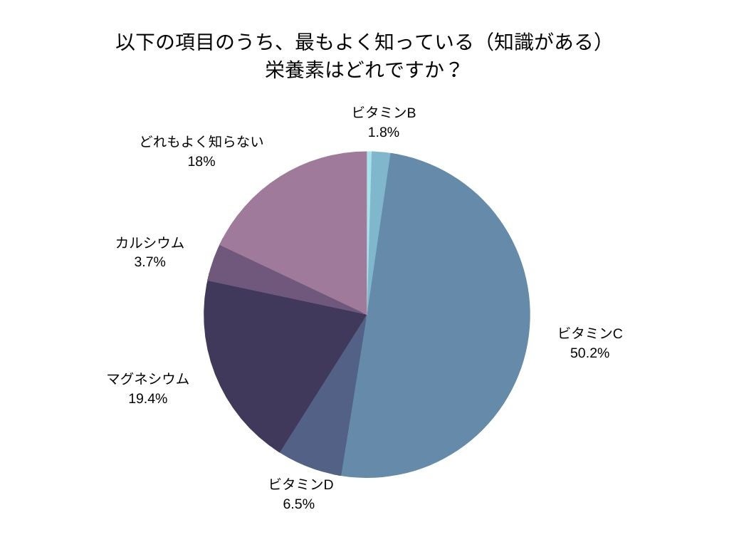 「ビタミンC」50.2% 「マグネシウム」19.4% 「どれもよく知らない」18%
