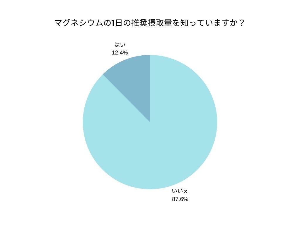 健康意識の高い男女であっても、「マグネシウムの1日あたりの推奨摂取量を知っている」と回答したのは全体の12.4%、1割強という結果になりました。