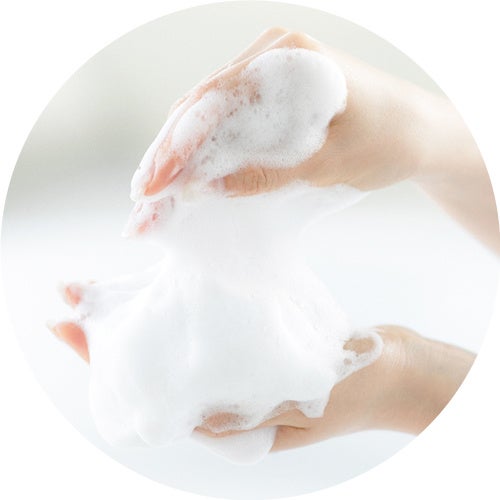 ふんわりもちもちとした泡を頭に乗せて、やさしくマッサージするように洗うことで髪だけでなく頭皮までしっかりリラックス&ケア。