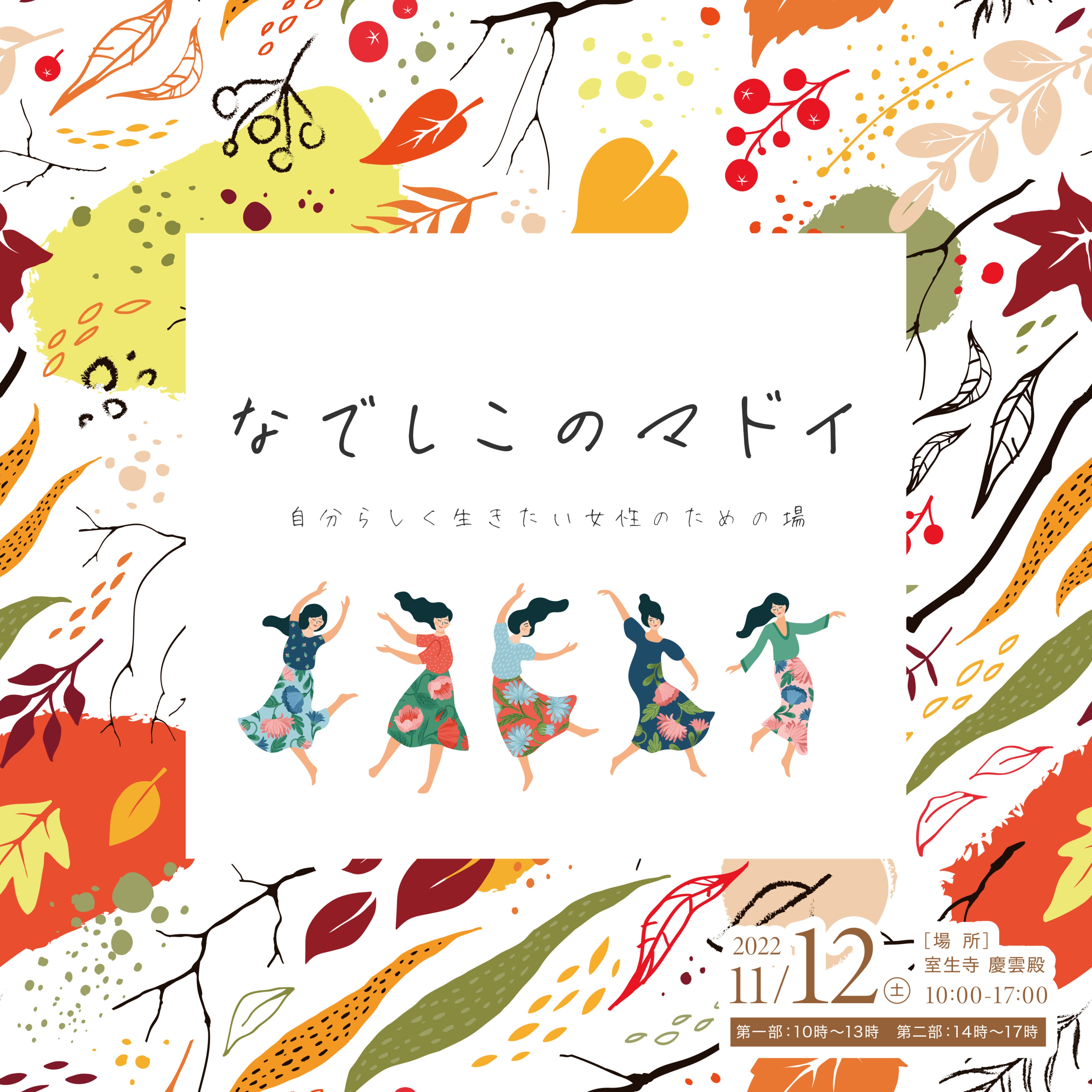 昨今、女性の生き方の選択肢は多様化し、選択の自由がある反面、「わたしらしさ」に悩む女性が増えています。そこでayameは、奈良の企業・団体と連携して、女性が参加者との交流も楽しみながら自分らしさのヒントを得られるイベントを開催します。「マドイ」は、楽しい会合、交流を深める意味である「円居(まどい)」と、「惑い」に由来します。