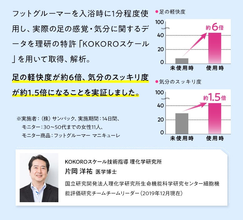 - フットグルーマー実証実験:気分のスッキリ度、足の軽快度向上