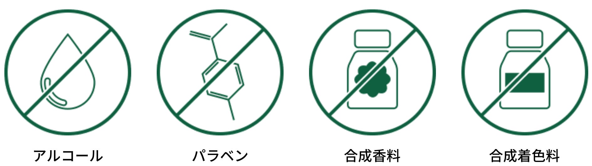 肌荒れが気になる方にも使用してただきたいという想いで商品を開発。4つのフリーを実現し、肌への優しさにこだわりました。