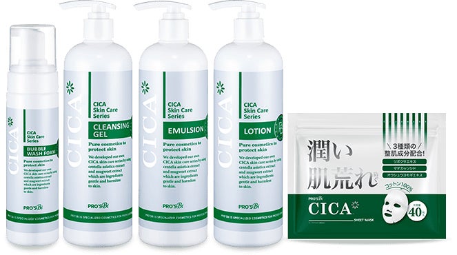 プロズビのCICAシリーズは、話題のCICA成分を配合した業務用化粧品シリーズです。ツボクサエキスをはじめとした3種のCICA成分と、ヨモギエキスをはじめとした植物エキスが肌荒れを防ぎ、健やかな美肌へ導きます。