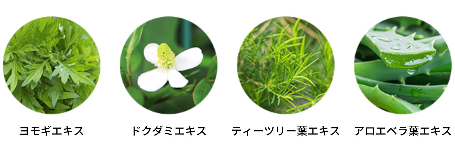 ティーツリー葉エキス…高い抗菌作用のある成分を含み、肌を清潔に保ち、皮脂バランスを整えて肌荒れを防ぐ