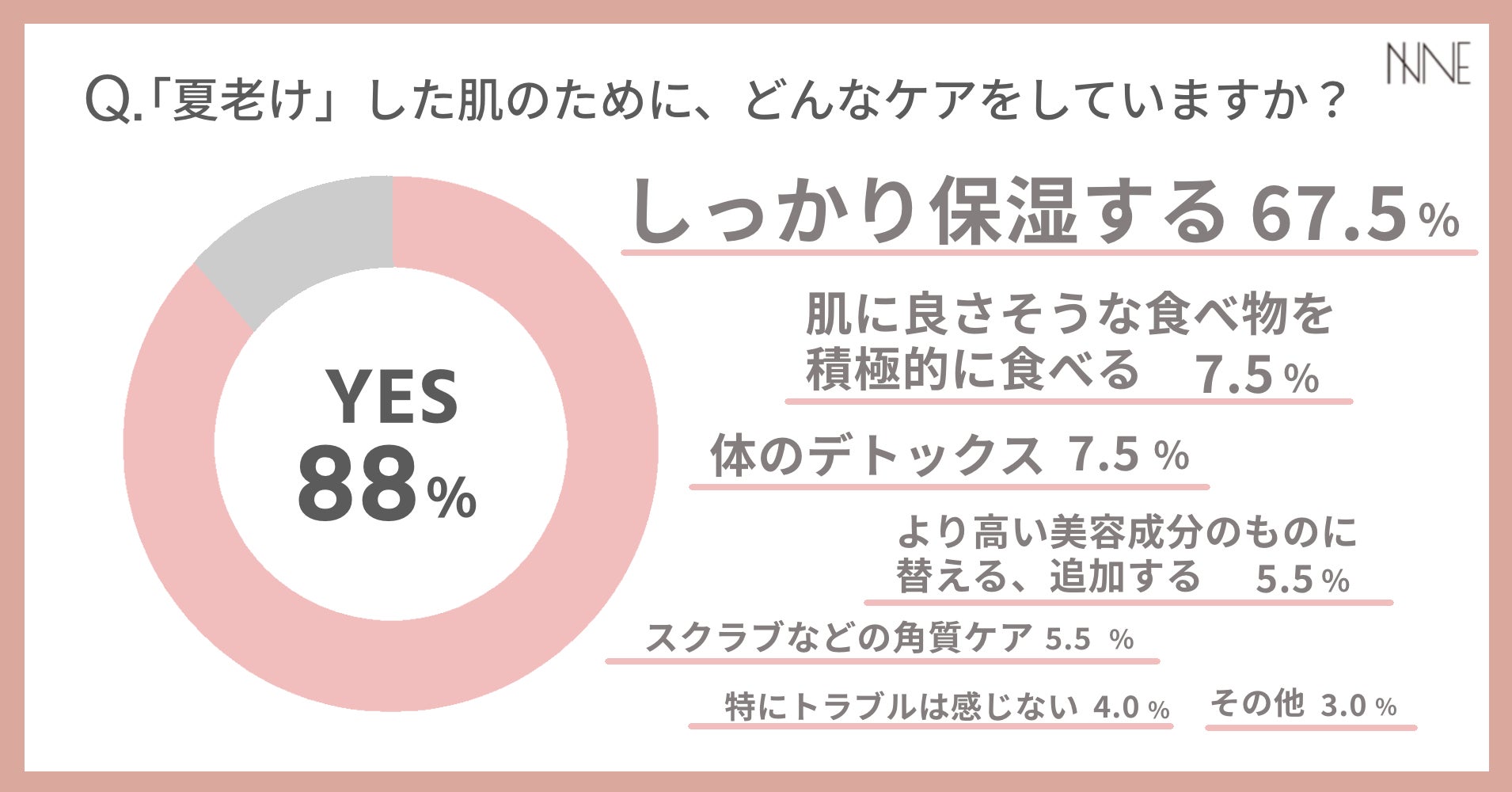 その他、蓄積された“夏老け”を浄化すべく「肌によさそうな食べ物を積極的に食べる」7.5%、運動や入浴で意識的に汗をたくさんかく「体のデトックス」7.5%。