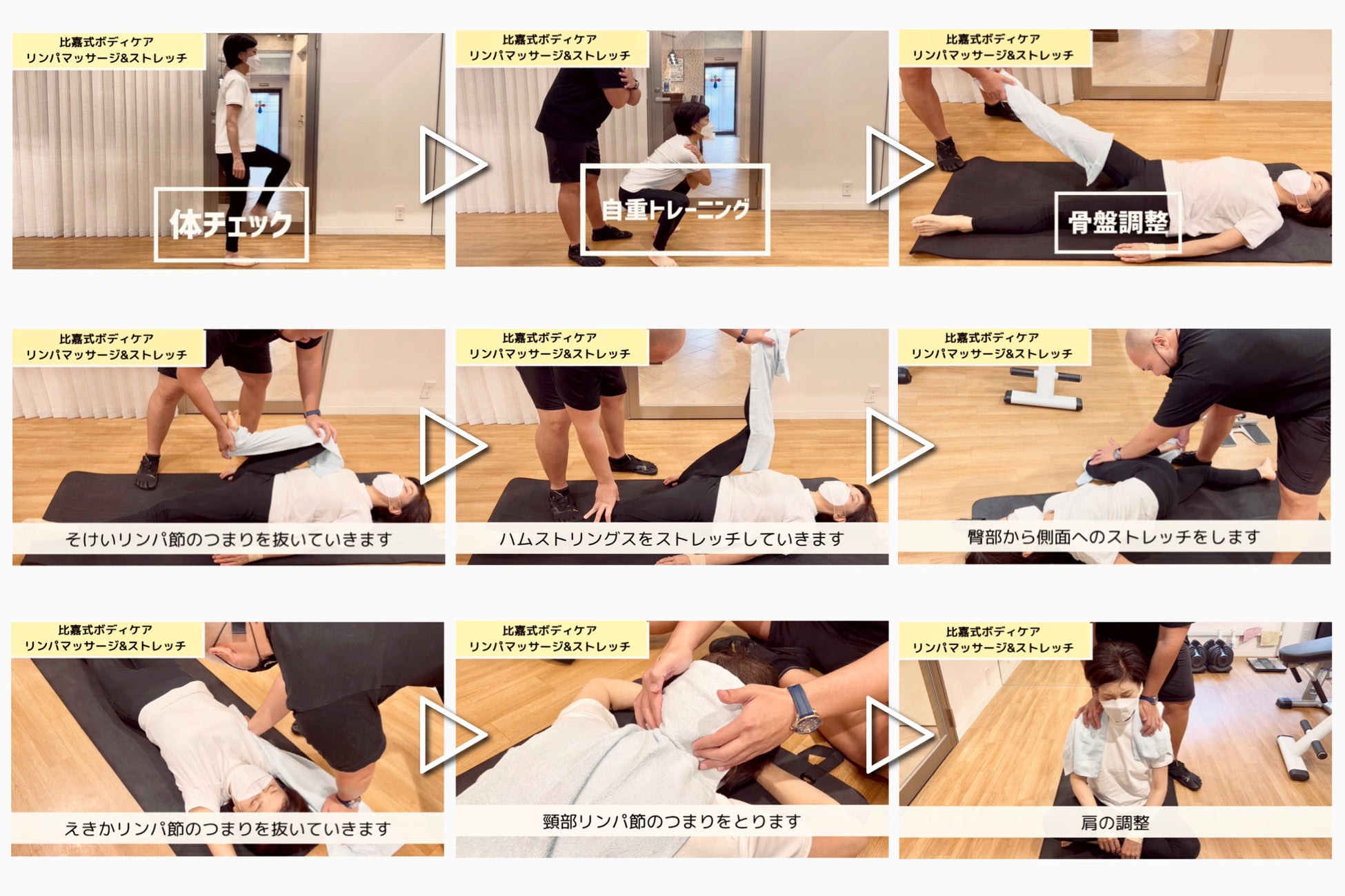 2018年に東京・駒込にオープンして以来、ご好評いただいております、脱力に特化したパーソナルトレーニングに加えて、自重トレーニングと体のコリ・リンパのつまりを取り除くと同時に骨盤矯正までを取り入れた独自の比嘉式ボディケア(リンパマッサージ&ストレッチコース)を提供開始いたしました。