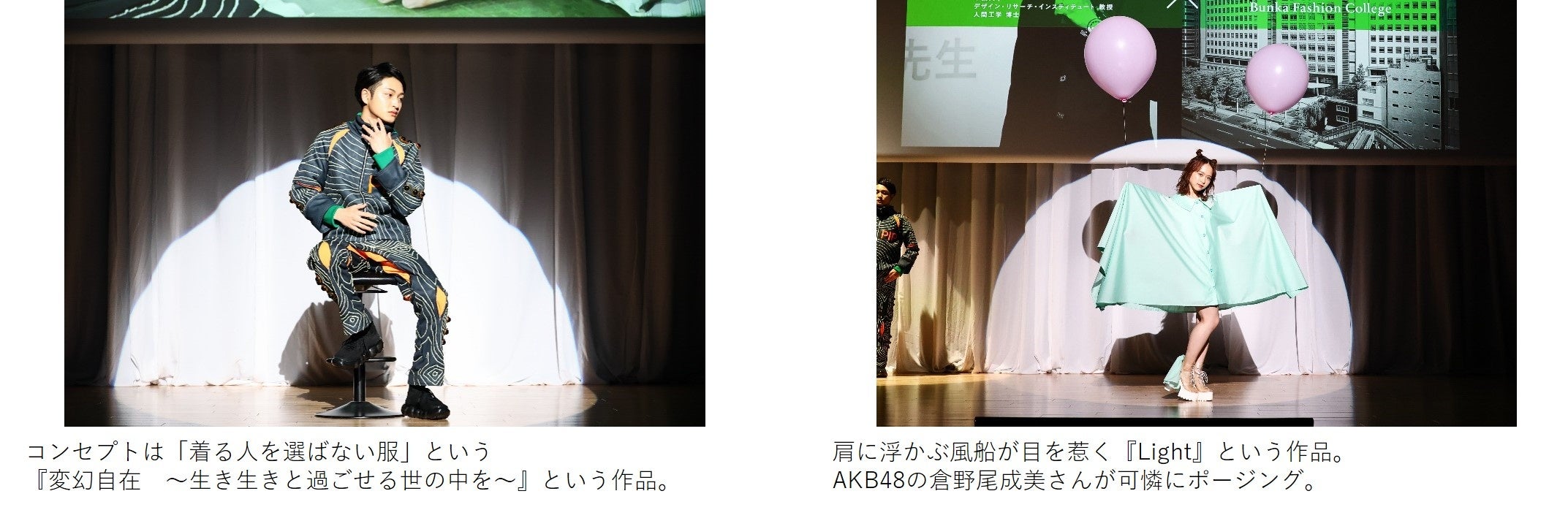 MCによる解説とともに、ユニークな衣装がお披露目される。