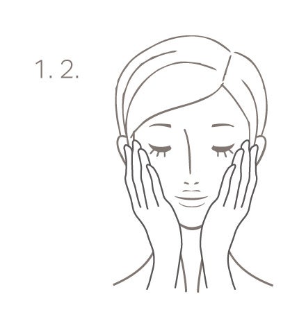 2. AWローション5,6滴を手に取り、手のひらで温めたら、首と顔全体によくなじませます。