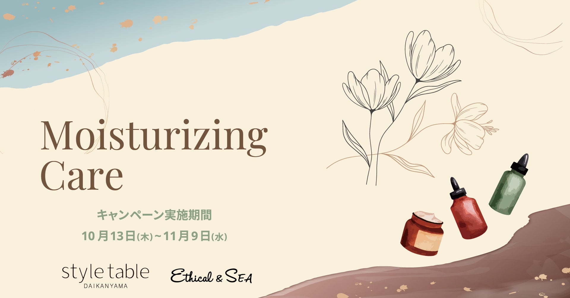 株式会社フラッグ(東京都中央区 代表取締役:吹上直子)は2022年10月13日(木)〜11月9日(水)まで「秋冬はオーガニックで潤う、乾燥ケアキャンペーン」を、運営するエシカルセレクトショップブランド「style table」(スタイルテーブル)「Ethical&SEA」(エシカルシー)で開催いたします。