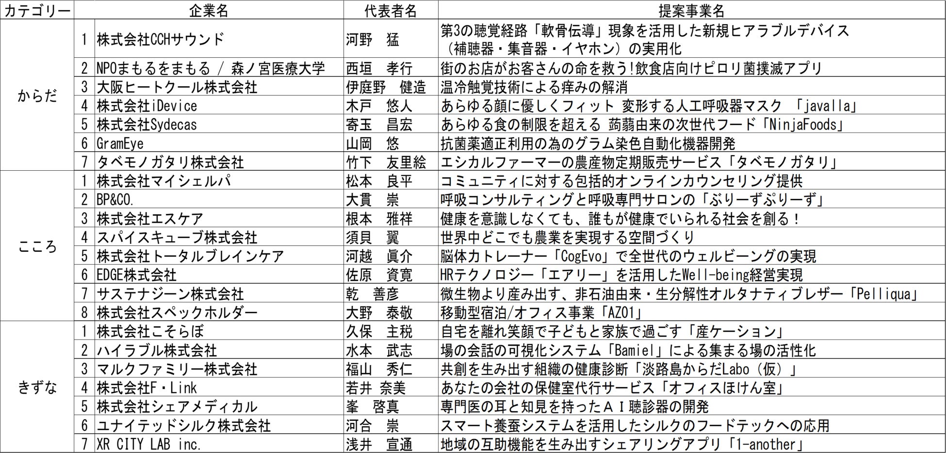 ・“Well-being(「からだ」「こころ」「きずな」)”をテーマにしたピッチイベントの開催