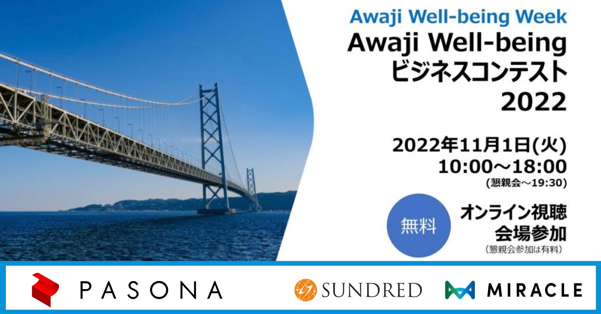 100個の新産業の共創を目指す「新産業アクセラレーター」SUNDRED株式会社(所在地:東京都渋谷区、代表取締役:留目 真伸、以下:SUNDRED)は、共創パートナーとして参画する株式会社パソナグループ主催のイベント「Awaji Well-being ビジネスコンテスト2022」にて、ピッチイベントに登壇するファイナリスト、プログラムの詳細が決定し、一般参加者の募集を開始したことをお知らせします。