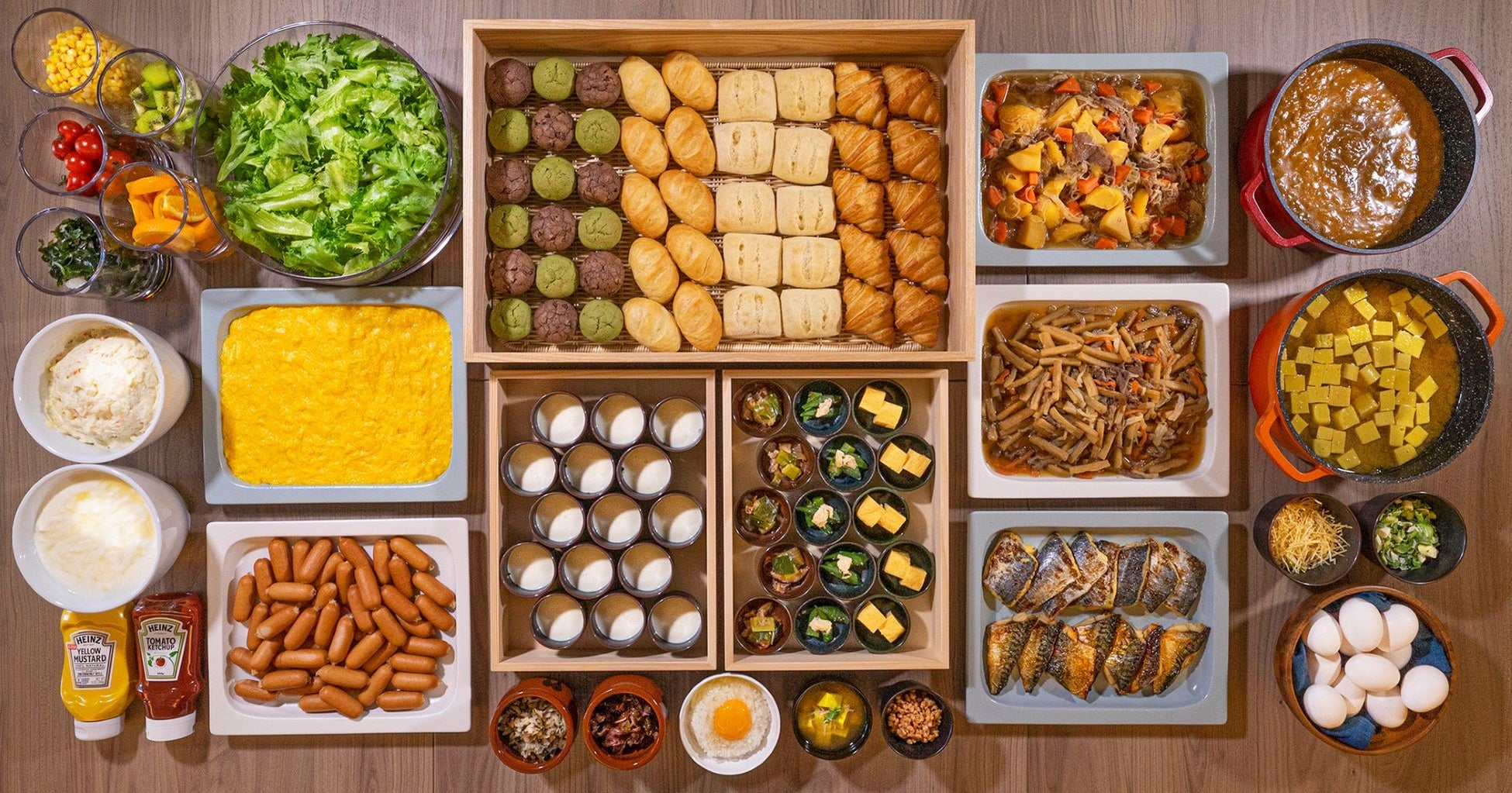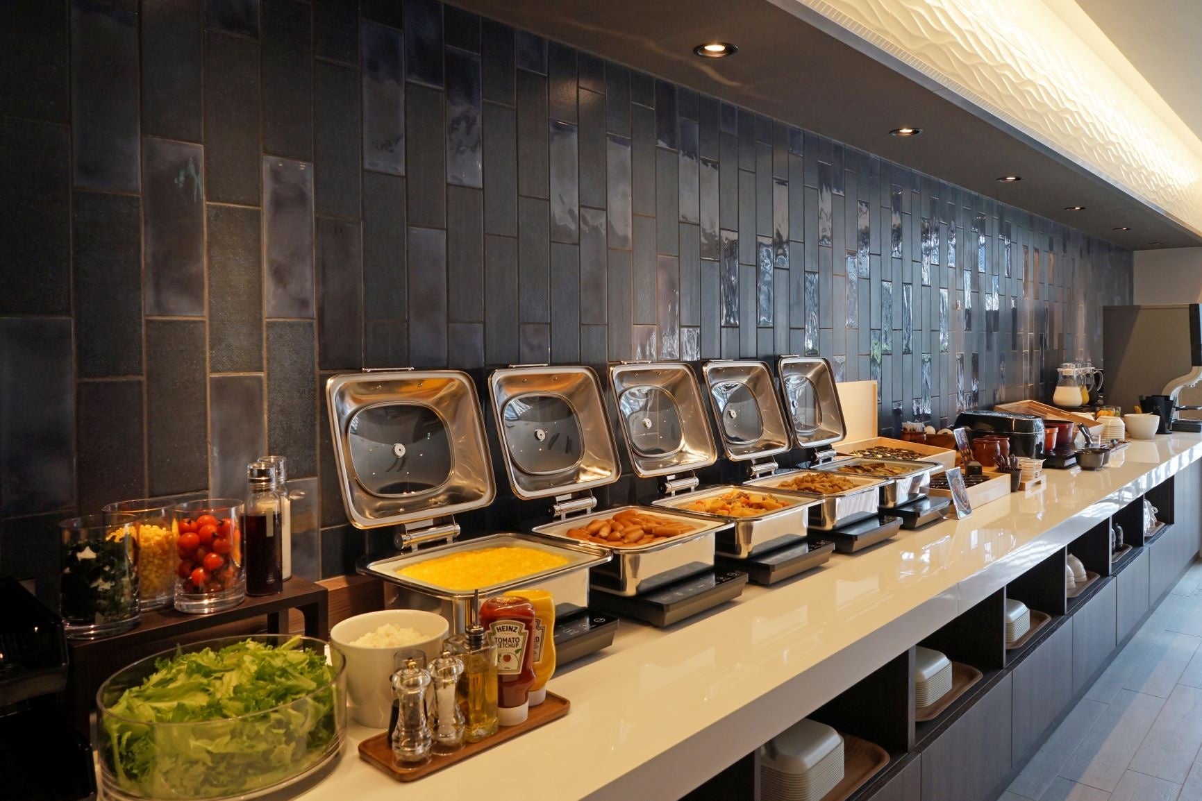 ごはんにあう和惣菜や、野菜がたっぷり取れるサラダ、期間限定目玉メニューなど、充実した和洋食ビュッフェの朝食です。京都ならではのおばんざいや漬物もお楽しみいただけます。
