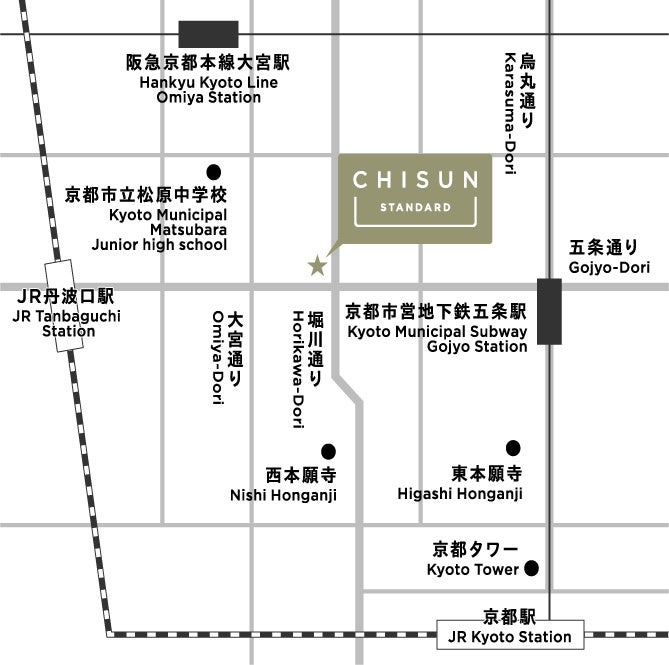 『チサン スタンダード 京都堀川五条』公式サイト:https://www.solarehotels.com/hotel/kyoto/cs-kh/