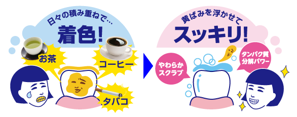 <タンパク質分解パワー>と<柔らかスクラブ効果>で黄ばみ※2を浮かせてスッキリ!