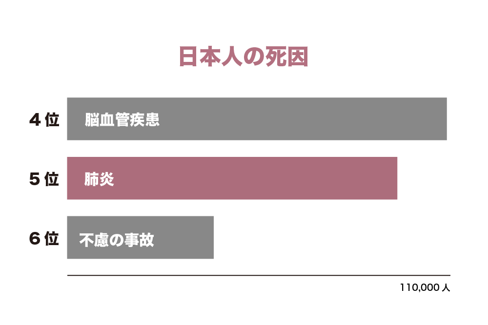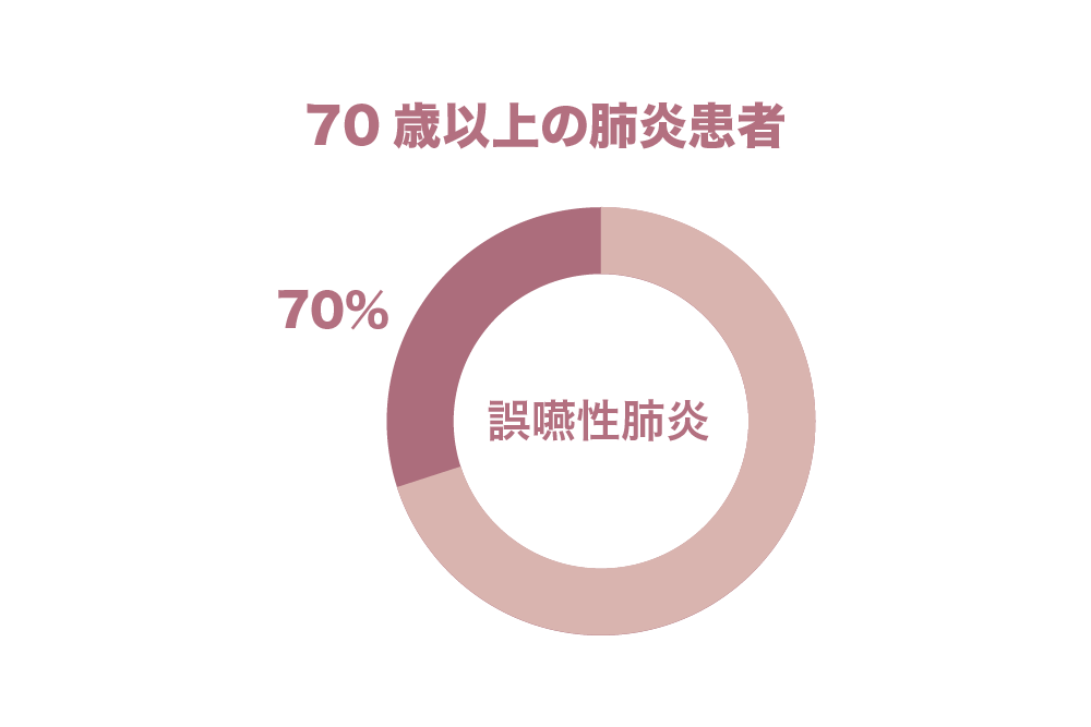 日本人の死因第5位は「肺炎」で、70歳以上の肺炎患者の7割以上は誤嚥性肺炎となっています。誤嚥性肺炎の原因の多くは、口腔嚥下機能の低下であると言われています。誤嚥性肺炎の予防においては、嚥下機能の予防が必要だと考え、嚥下機能低下を可視化し嚥下機能低下予備軍への対応策を創出することを目標に研究を進めてまいりました。