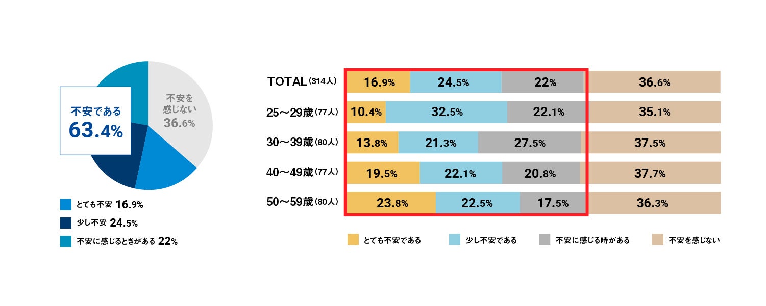 ◆20代~50代の男性の約63%が薄毛に不安を感じている◆