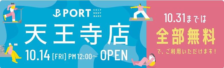 兵庫県西宮市で大人気のセルフボディメイクスタジオ「PORT」が大阪府天王寺区に本日OPENしました。