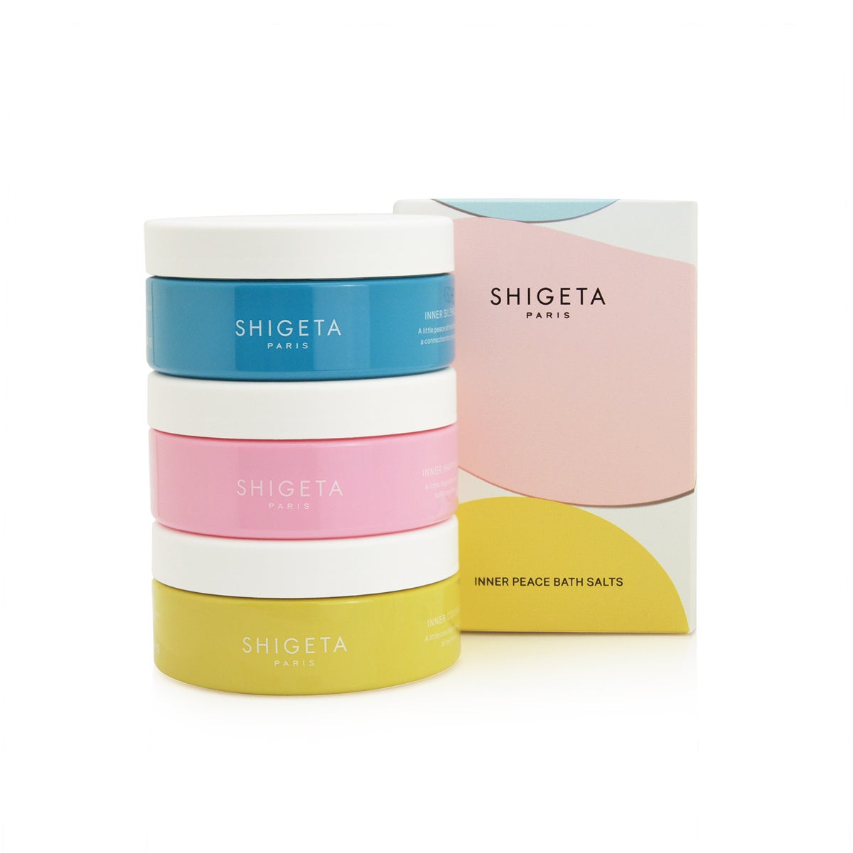 心のピース、内なる勇気、そして幸福感。そのすべてを自宅のバスルームで満喫できる、ハートフルなバスソルト「インナー ピース バスソルト」が誕生します。時流とともに私たちはよりウェルビーイングに対する新しい意識が芽生え、自分と向き合い、ストレスを溜めずに気分をよく過ごすことが欠かせないことを実感しています。SHIGETA PARISから、リラックスできるバスタイムを通して新しく提案するのは、3つのなりたい心をもたらす3種類の 香りのバスソルトセット。「インナーサイレンス」は、前向きな思考を高めるローズマリーとリラックスをもたらすジュニパーで不安や心配ごとをシャットアウトし、心にピースををもたらします。「インナーハピネス」は気持ちを落ち着かせるベルガモットとストレスを和らげるゼラニウムが、内なる幸福感を満たします。「インナーカレッジ」は、安らぎを与えるイランイランをベースにスイートオレンジを加え、自信を取り戻し、内なる勇気をサポート。愛らしい3色のパッケージは、心と体をつなぐエネルギーポイントにリンクした色の組み合わせです。アラビア半島の死海で採取した高純度のデッドシー・ソルトが肌をしっとりと柔らかに整えます。2023年に向けて日々の疲れを癒やし、ストレスを和らげる「インナーピース バスソルト」で、幸福感に包まれる豊かなバスタイムをお過ごしください。