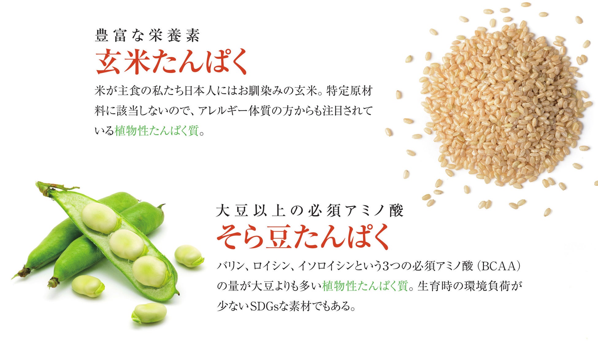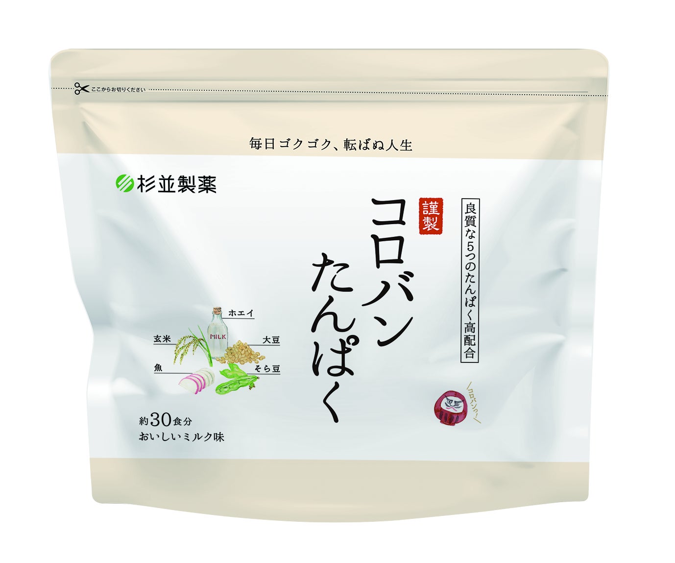 バランスのとれた良質なたんぱく質を手軽に摂取できることを第一に考え、動物性たんぱくと植物性たんぱくによる独自のコロバン配合を実現。これにより、5種類もの良質なたんぱく質を一度にバランス良く摂ることができます。