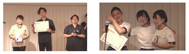 表彰式では、リバース東京部門グランプリを受賞した幕張温泉湯楽の里スペースリーダー広瀬さんは「この賞をいただけたからと言って最後ではなく、全員でより良いスペース作りに活かしていきます」と語り、ボディワーク部門グランプリを受賞したラフィネプリュス ららぽーとエキスポシティ店リーダー松下さんは「オープンして2日でコロナによりお店が閉まってしまい、お客様が来ない日々にどうしようと悩みました。楽しむ気持ちを忘れず、毎日悩んで、みんなで頑張ったからこの賞をいただけたのだと思います」と涙で喜びを語りました。