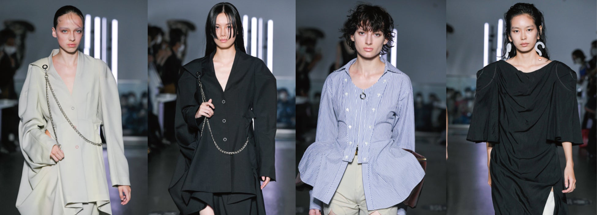 今回のコレクションは、時間的、空間的な振れ幅の中で今この瞬間や自分自身を見つめ直す、といったことを主軸に置いているため、あまりパキっと明白な女性像ではなく、強さの中に迷いや不安さえも感じさせるような多面性のあるミステリアスな女性をイメージしました。