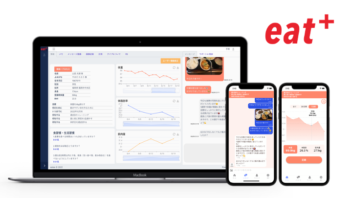 「楽しく美味しく食べること」で健康になることをあたりまえのセカイにすることをビジョンに掲げ、健康になりたい、痩せたい、きれいになりたい、パフォーマンスを上げたいなど、身体を変えたい人たちの食事をサポートしています。2022年2月からeat+アプリβ版による実証実験を、フィットネス領域、ビューティー領域、スポーツ領域で実施してきました。2022年8月にiOS版、10月にAndoroid版を正式リリースしました。