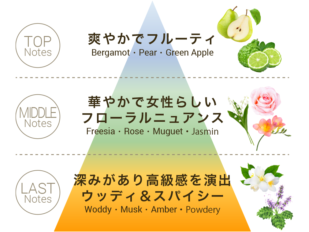 <特徴④>こころも明るくする独自ブレンドの香り <⑤>やさしさを追求した9種の無添加・フリー処方