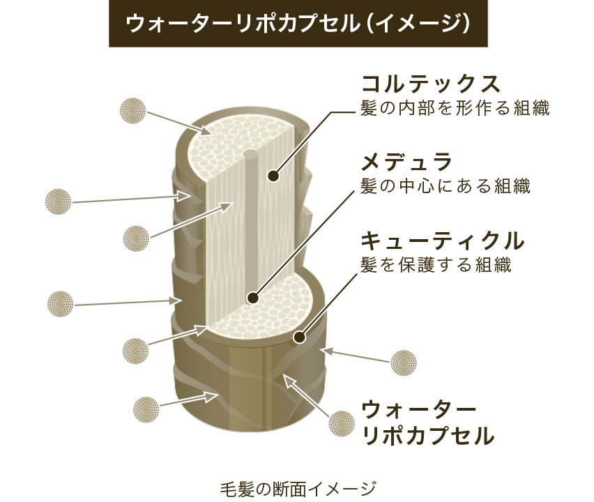 <特徴③>独自リペア処方「ウォーターリポカプセル*7」が髪の外側から内側までたっぷり貯水*・補修