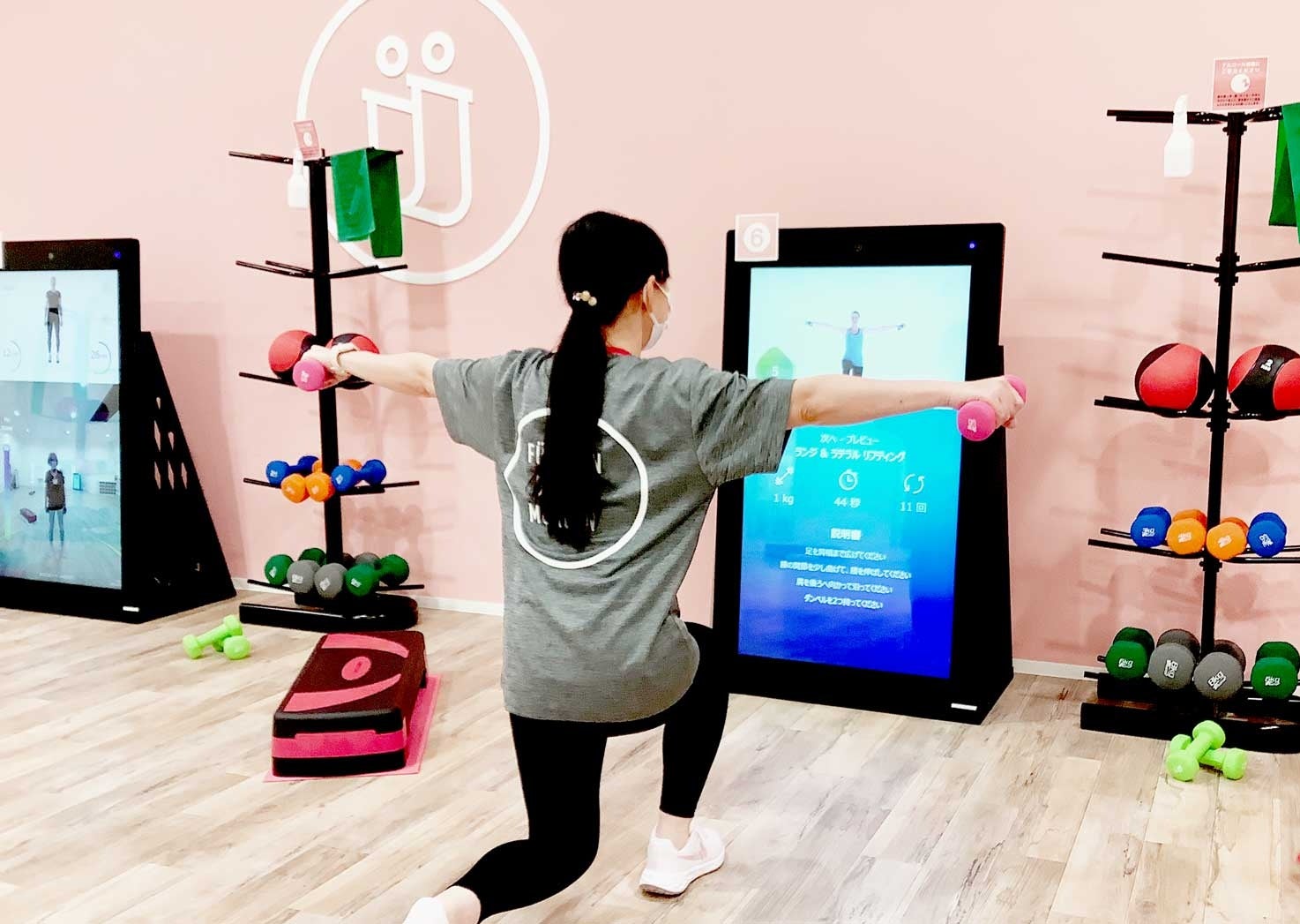 マシンのモニター画面上部に映るAIトレーナーの動きにあわせて動く新感覚のパーソナルトレーニング