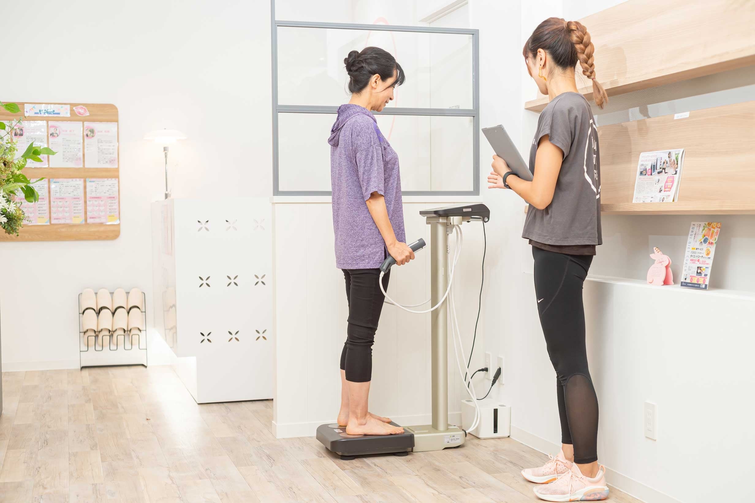 2ヵ月に1回のペースで定期カウンセリングを実施。「膝が痛い」「怪我をした」などの場合でも、部位に負担がかからないメニューに変更をかけますのでご安心ください。また、「あなただけの個別プログラム」も目的や悩みの変更にあわせた内容に調整できますので、マンネリ化せず、飽きずにトレーニングが続けられます。カウンセリング時には、体組成計で、 脂肪量・筋肉量・水分量等を計測させていただきます。定期的な変化を感じていただくことが、ご自身のモチベーションアップにもつながり、結果にもつながります。