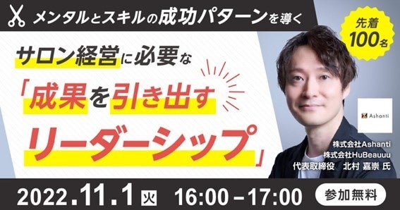 今回は最大手サロンの役員を歴任し、現在は合計65店舗のサロンを経営する、株式会社HuBeauuu(ハビュー)および株式会社Ashanti(アシャンティ)の北村社長にご登壇いただきます。