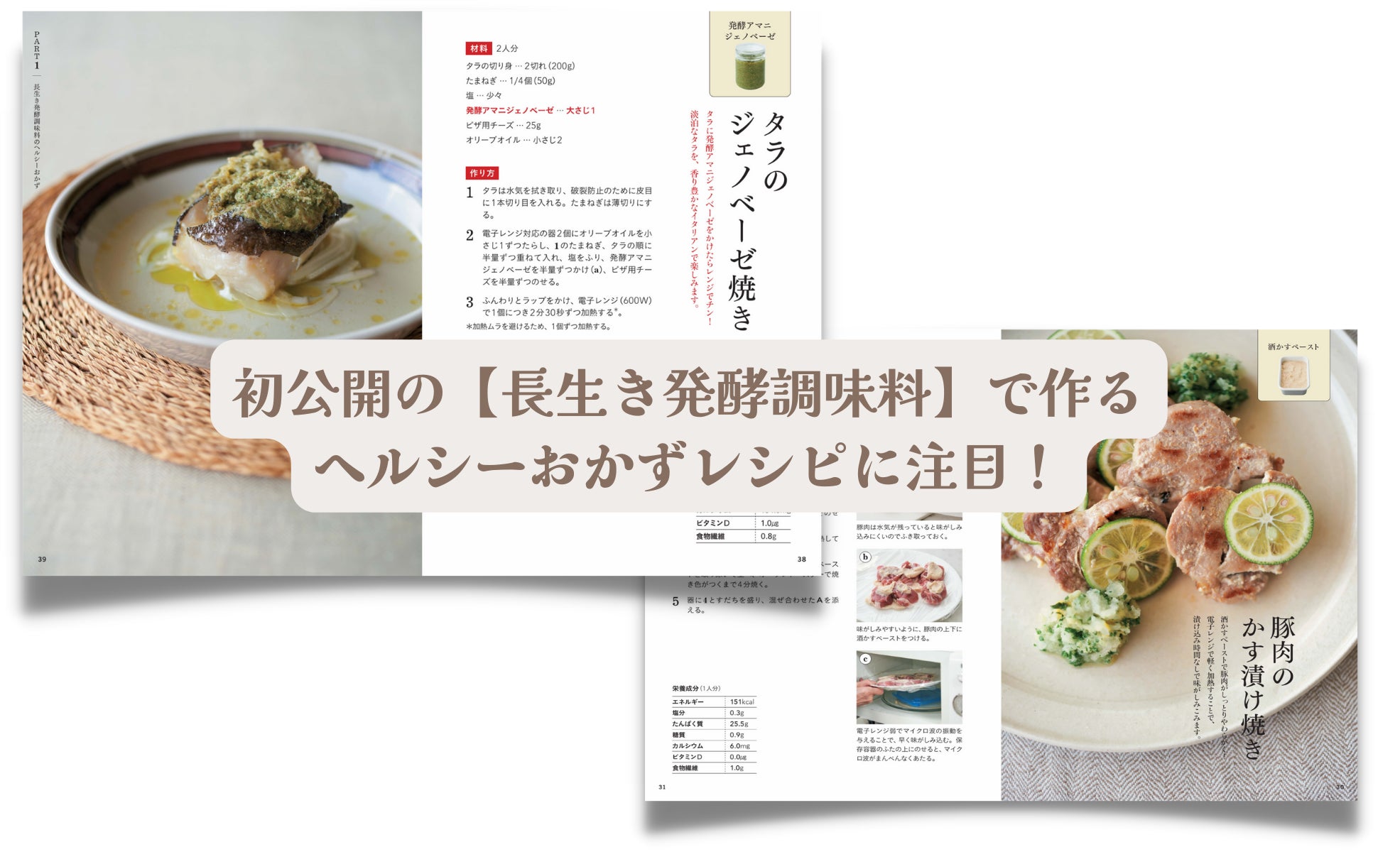 「長生き発酵食調味料」は、発酵パワーはもちろん、味も使いやすさも保証つき。本書では、村上祥子さん直伝の最強調味料5種「①アマニみそだれ」「②酒かすペースト」「③発酵アマニジェノベーゼ」「④酢野菜3種」「⑤塩麹」を初公開します。それぞれの発酵調味料を活かした簡単ヘルシーおかずレシピは、忙しい毎日の献立づくりにも役立ちます。